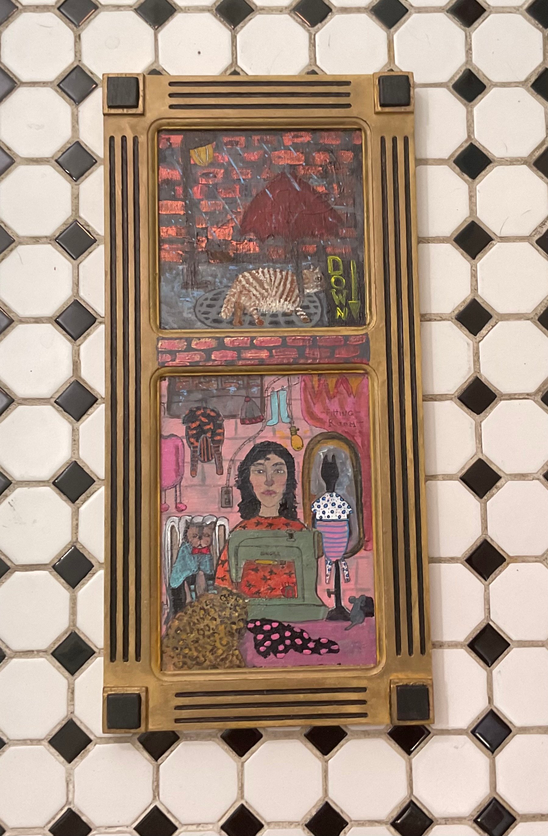 18x81/2 If you know my art you know I love to paint workshops. This was just the coolest frame! Repainted somewhere along its life. Probably from the 1950 s. When it comes to websites it not my biggest talent. So if you have questions or would like more pictures I love e-mails🩷 Melissa MENZER- [email protected]